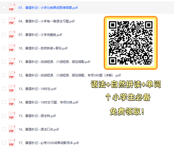 免费领!小学英语提分秘籍,单词语法轻松秒记