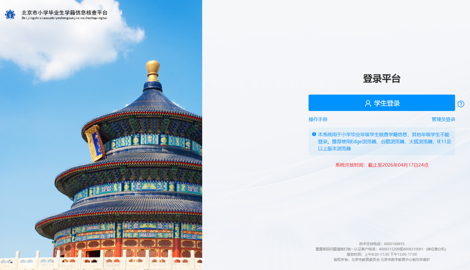 北京市小学毕业生学籍信息核查平台针对2026年北京小升初家长开放,涉及的家长请注意平台开放截止至4月17日24:00,本文为家长分享小升初最新动态、北京市小学毕业生学籍信息核查平台及操作手册,