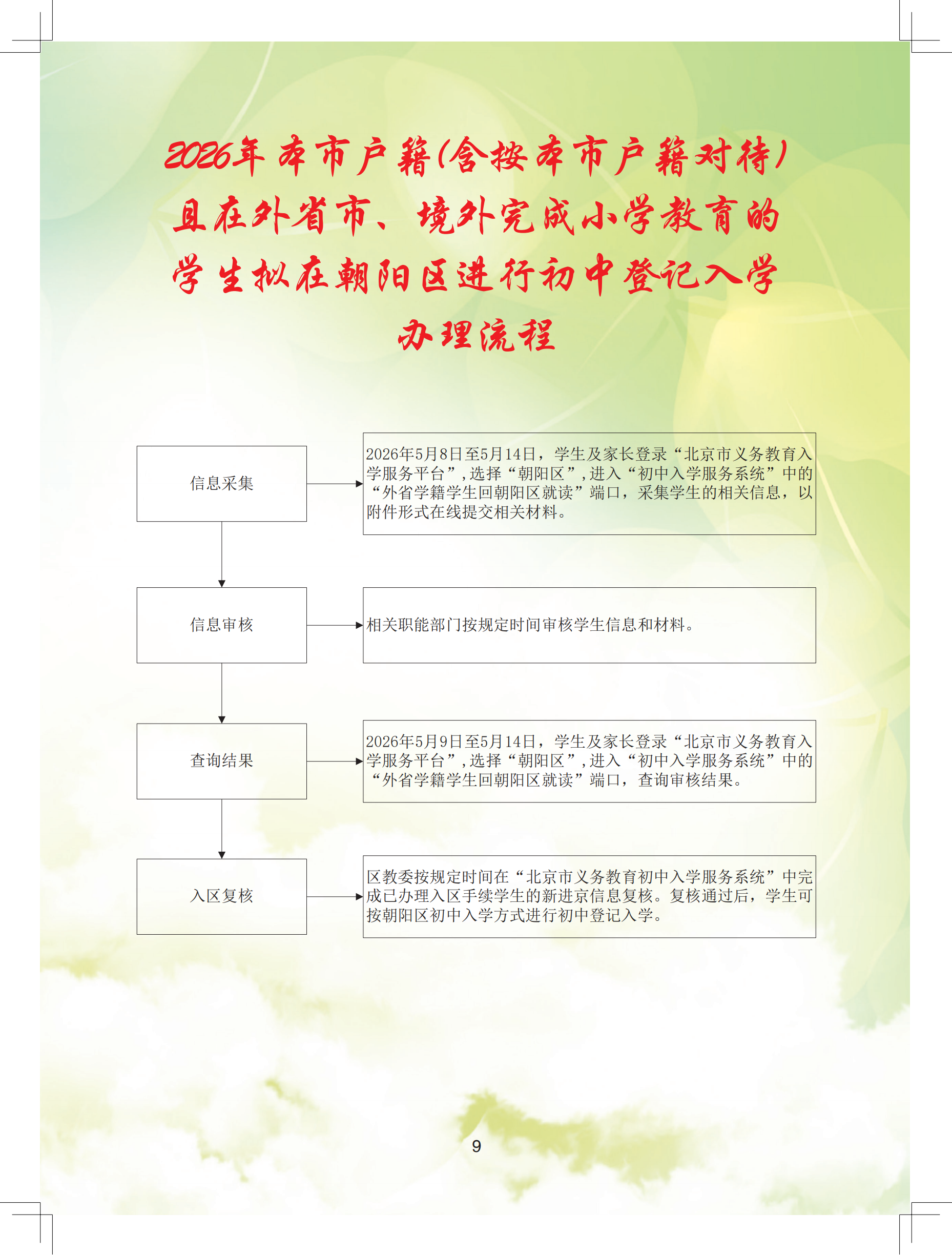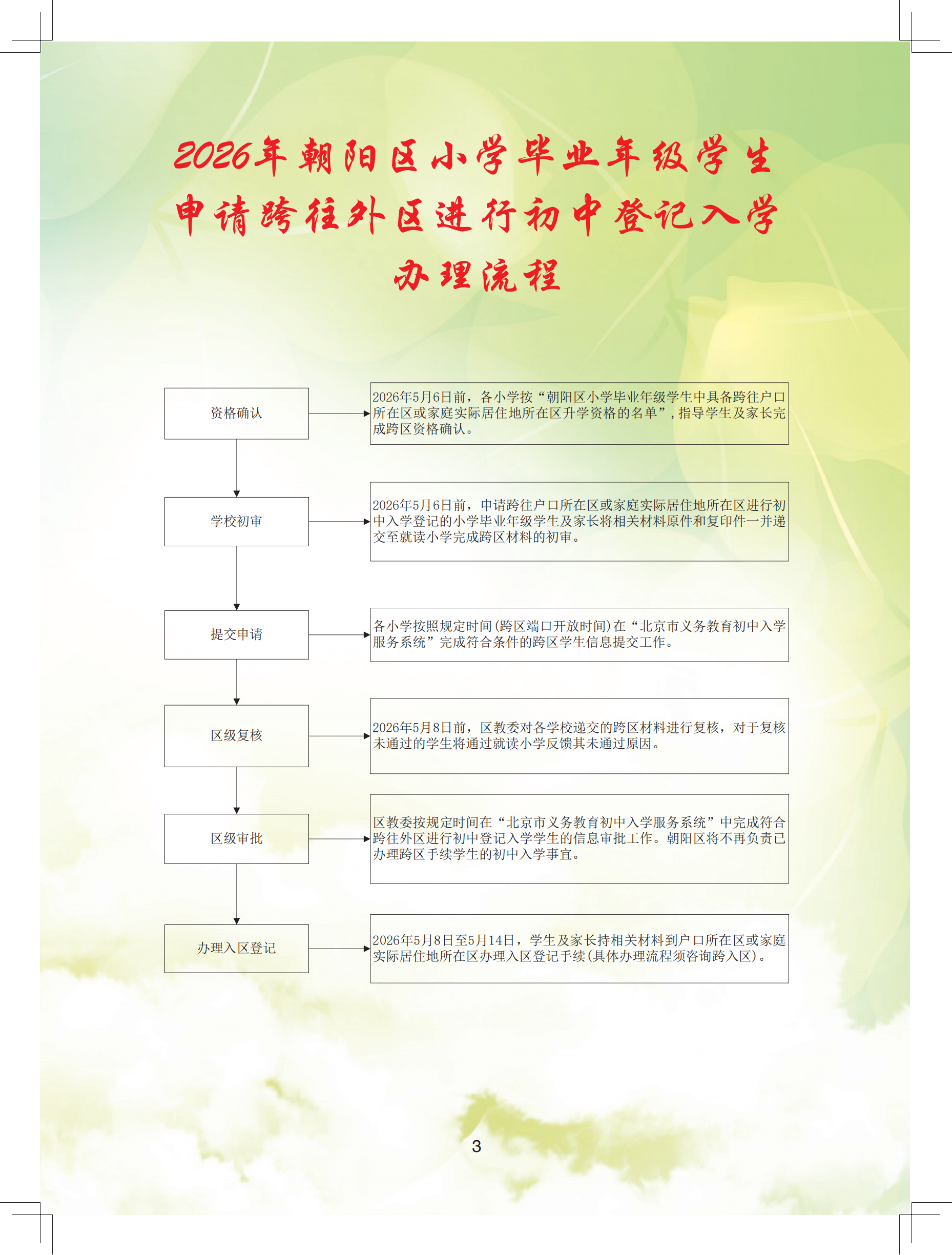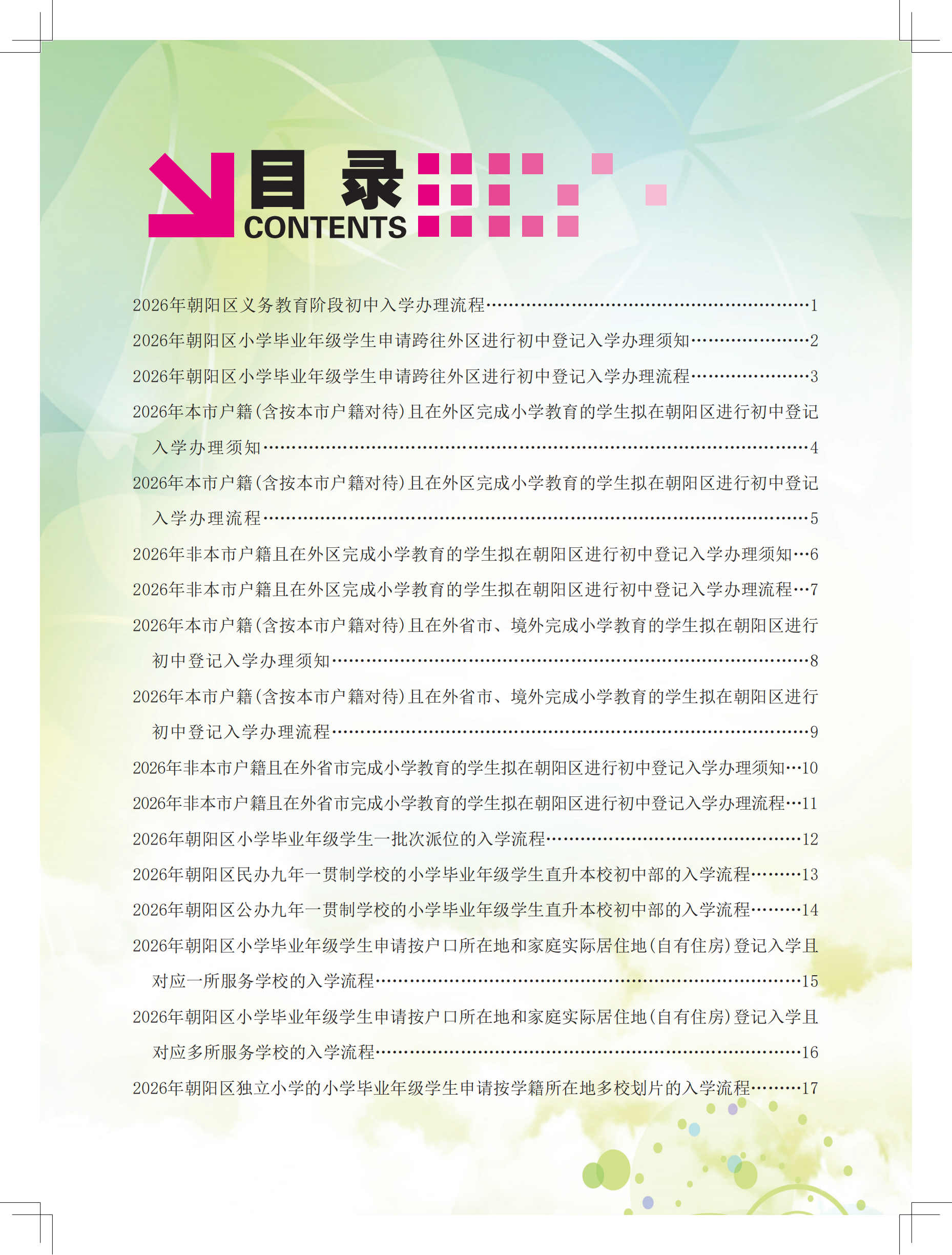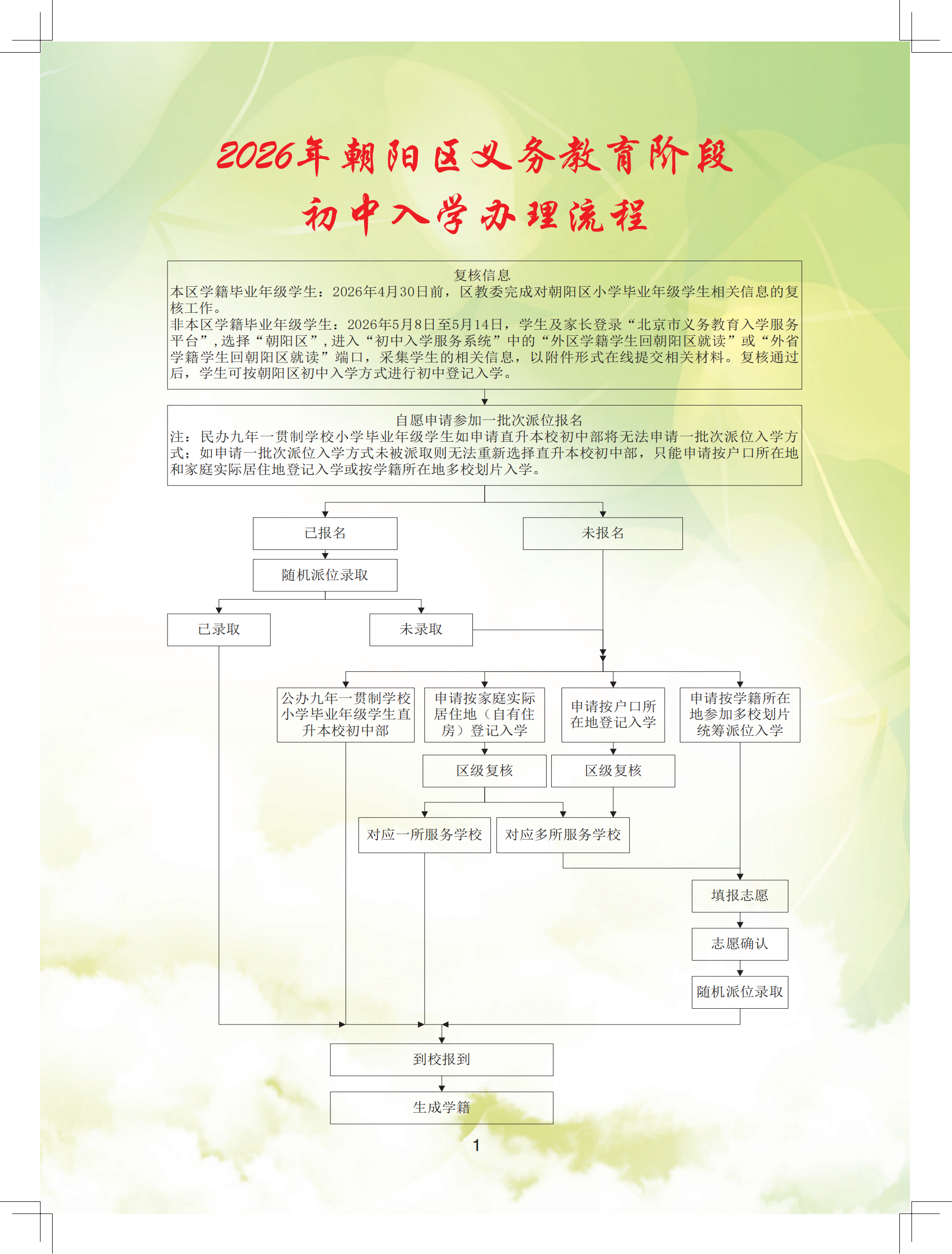 2026年朝阳区义务教育阶段初中入学流程手册,详细说明了2026年朝阳区幼升小入学报名流程。2026年朝阳区幼升小各环节入学报名步骤有哪些?2026年朝阳区京籍幼升小和非京籍幼升小有哪些不同?本文为大家同步2026年朝阳区义务教育阶段初中入学流程手册,同时也建议2027年朝阳区家长提前关注准备。