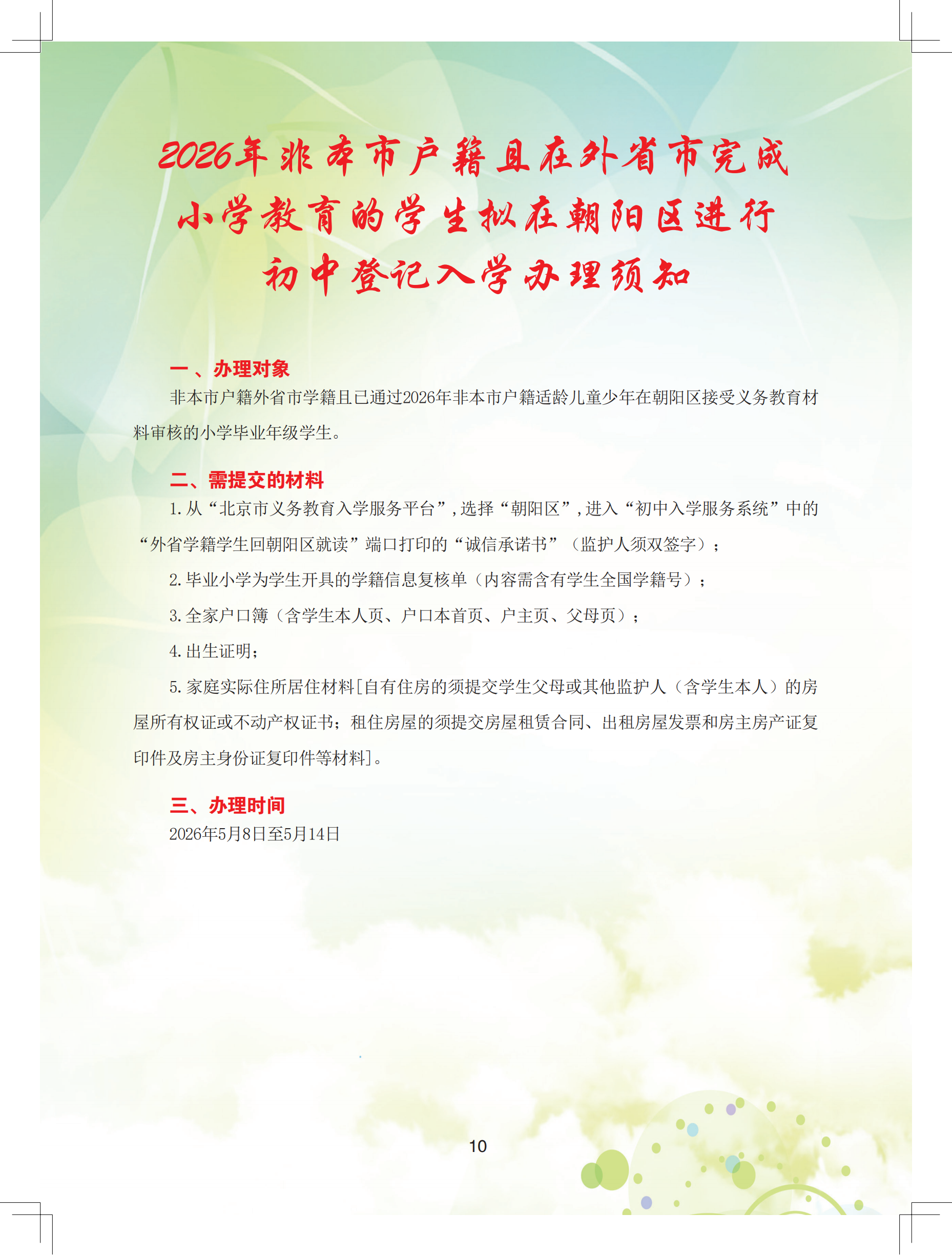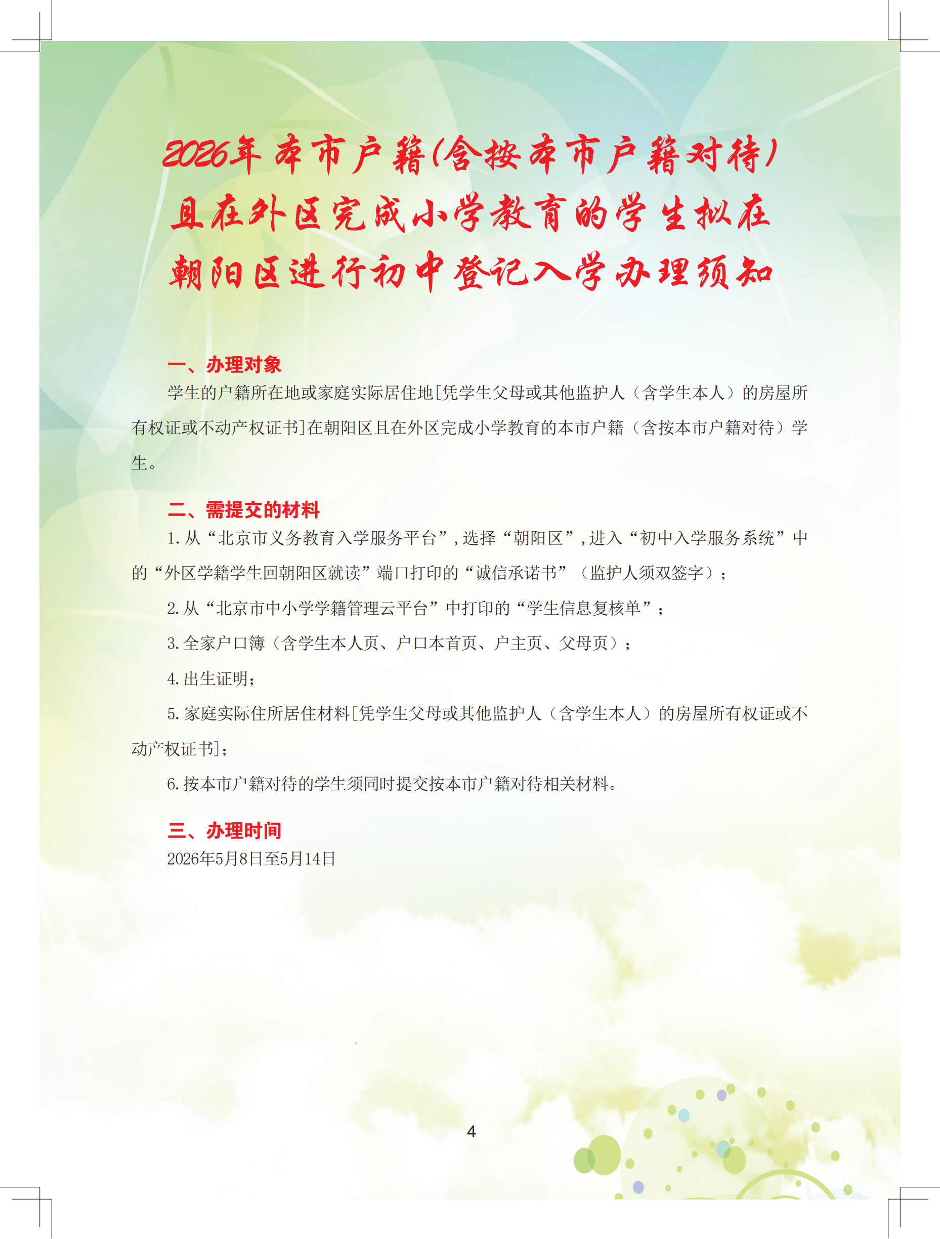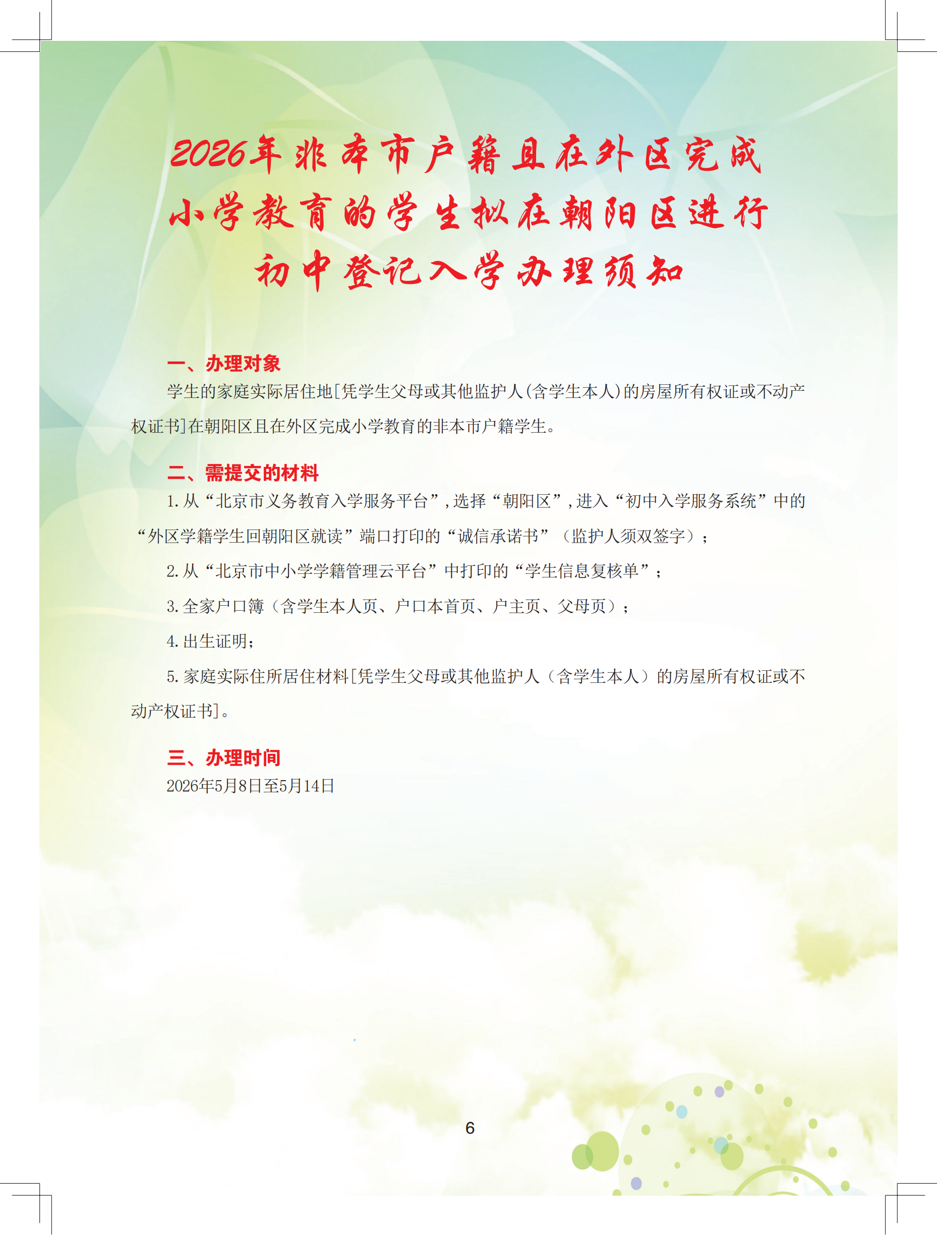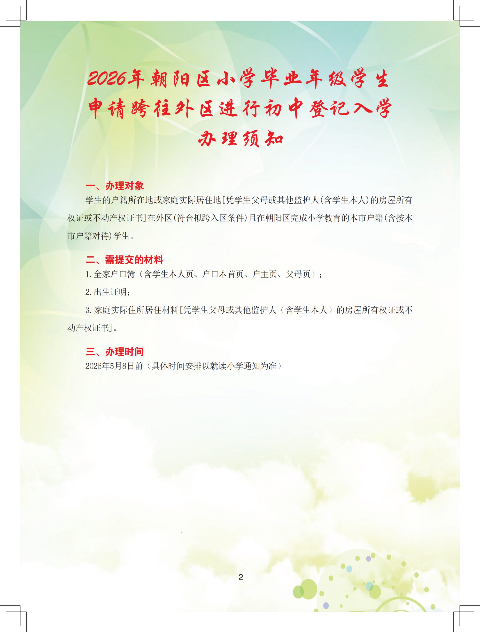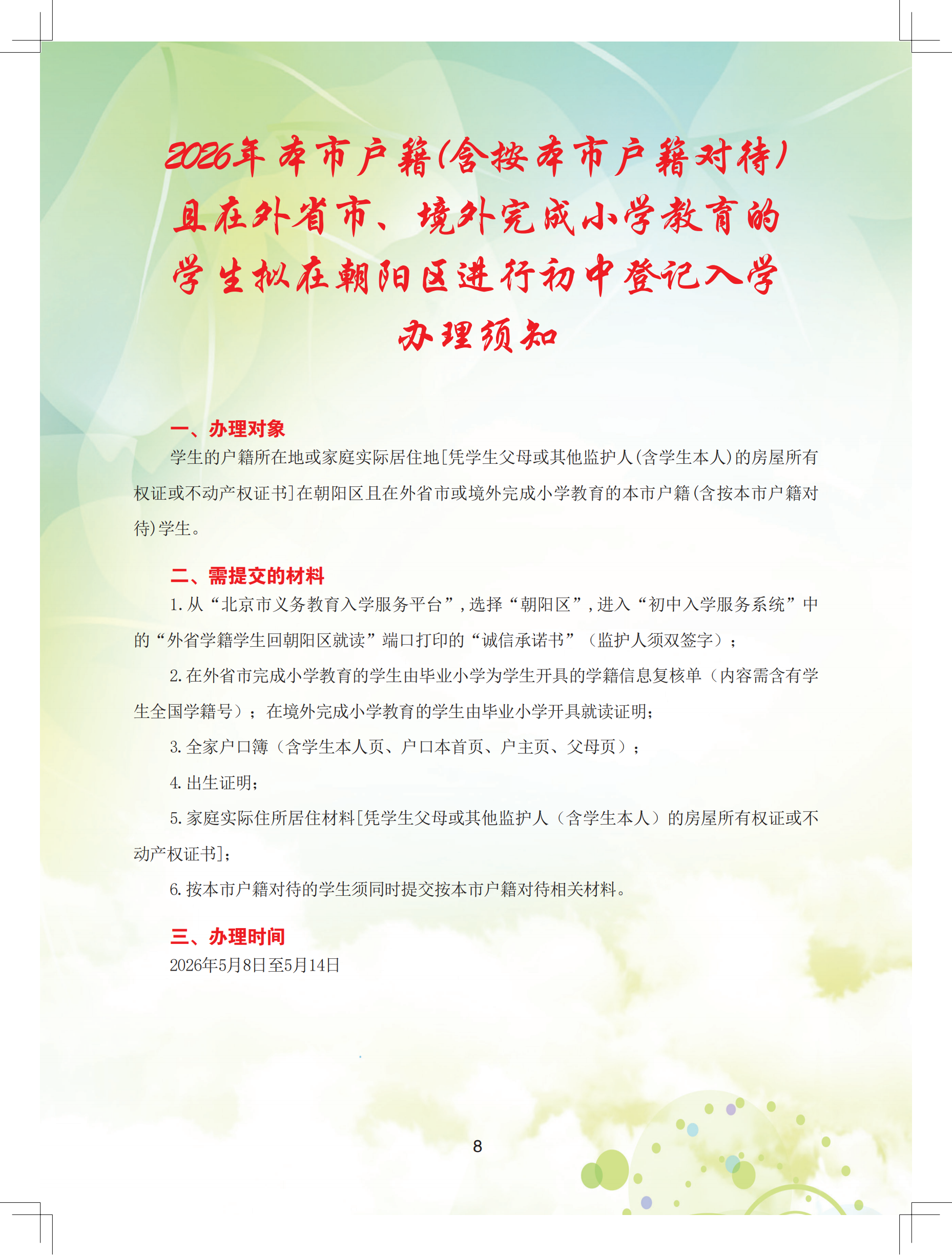 2026年朝阳区义务教育阶段初中入学流程手册,详细说明了2026年朝阳区幼升小入学报名流程。2026年朝阳区幼升小各环节入学报名步骤有哪些?2026年朝阳区京籍幼升小和非京籍幼升小有哪些不同?本文为大家同步2026年朝阳区义务教育阶段初中入学流程手册,同时也建议2027年朝阳区家长提前关注准备。