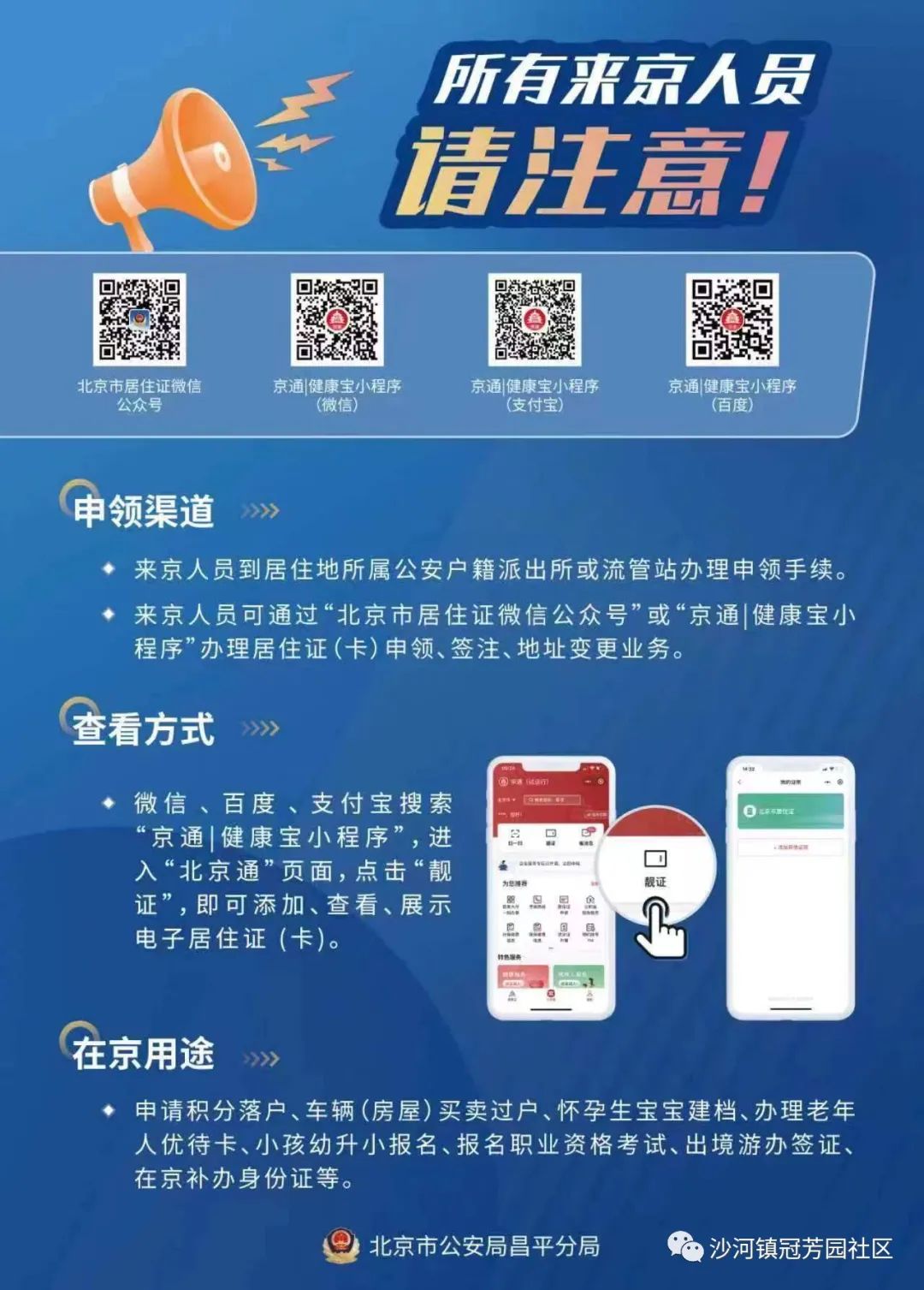 2024年昌平区沙河镇冠芳园社区来京人员居住证(卡)办理通知