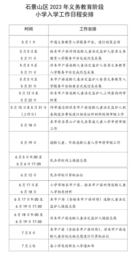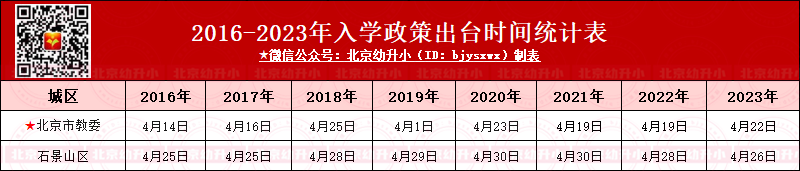 参考近几年,北京市义务教育政策、石景山区入学政策集中于四月中下旬发布,详细时间可参考下图: