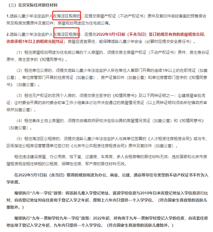 2024年海淀区非京籍幼升小需要在本区实际居住