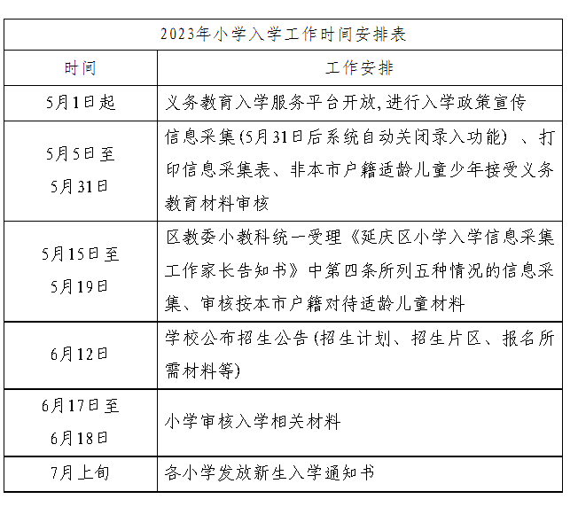 入学条件:非京籍符合→延庆区非京籍四证入学材料清单审核通过后入学。
