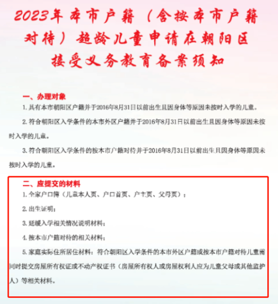 ✔️朝阳区超龄儿童入学
