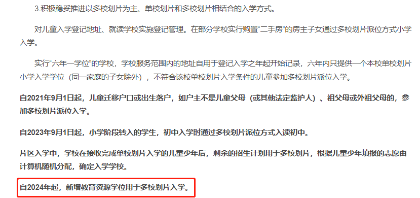 根据2023年丰台区义务教育阶段入学工作意见的通知:自2024年起,新增教育资源学位用于多校划片入学。