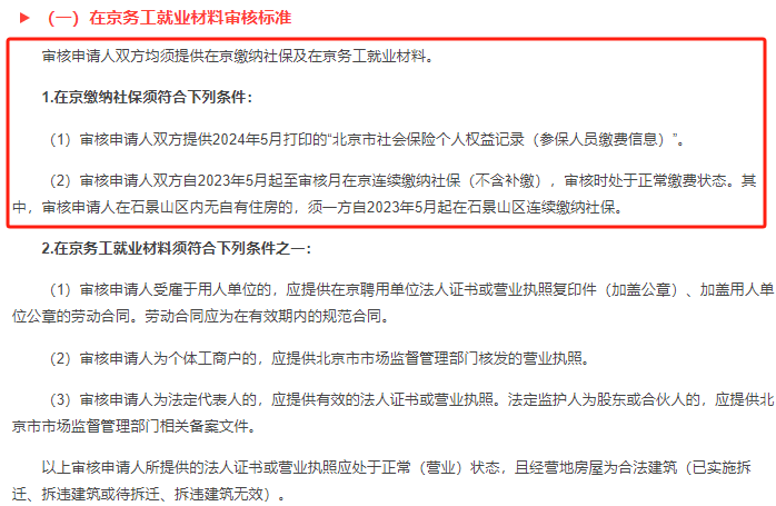 租房需要提供父母双方在京且至少一方在石景山区缴纳的社保,时间要求为2023年5月至审核月