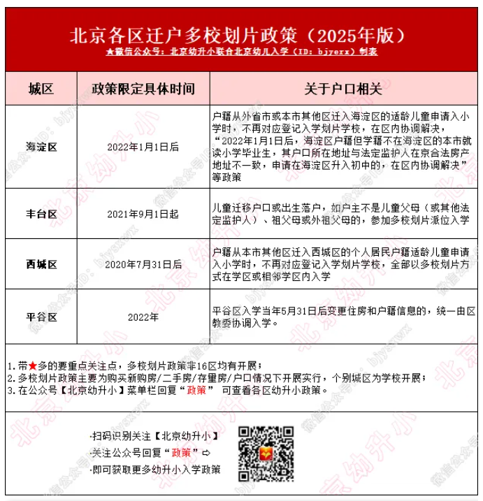 2026年幼升小家长注意,截至目前,已有四区明确迁户口实行多校划片入学方式!有迁户口意向的家长,赶紧和北京幼升小(ID:bjysxwx)京京一起来看看!