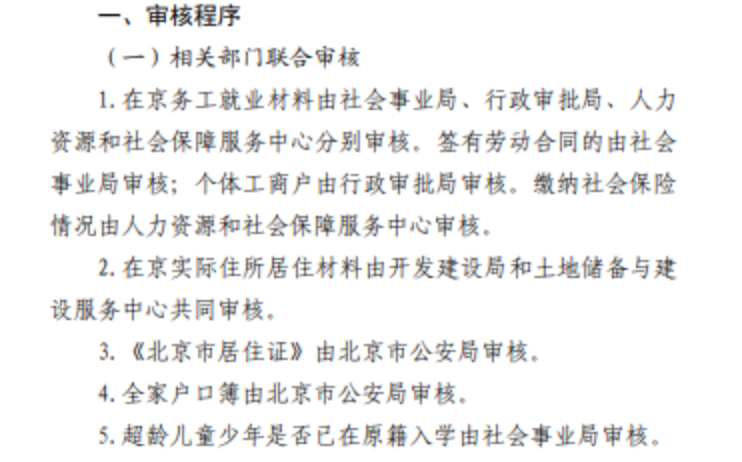 1.在京务工就业材料由社会事业局、行政审批局、人力资源和社会保障服务中心分别审核。签有劳动合同的由社会事业局审核;个体工商户由行政审批局审核。缴纳社会保险情况由人力资源和社会保障服务中心审核。