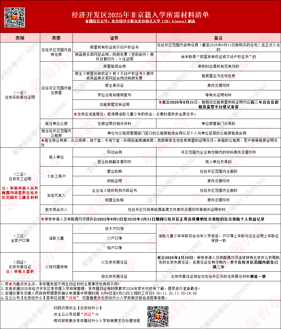 3.经开区各类人群入学材料要求可参考2026年北京16区幼升小各类户籍入学材料要求清单汇总(京籍、非京籍、按京籍对待、超龄等)