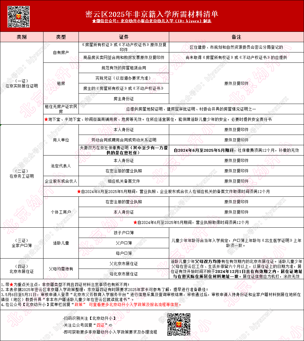 2026年密云区非京籍幼升小可提前关注!密云区非京籍四证中的在京务工就业证明、在京实际居住证明、全家户口簿、北京市居住证分别有哪个部门审核?密云区非京籍四证是线上审核还是线下现场审核?2026年密云区非京籍四证审核标准是什么?北京幼升小网为您分享密云区非京籍四证详细要求及审核部门相关信息。