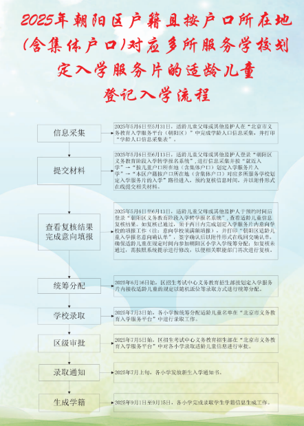 2026年朝阳区幼升小集体户入学的条件、材料、方式及流程已明确核心框架,为家长备报提供关键指引。条件上,需满足适龄儿童为朝阳区单位集体户籍;材料需准备集体户口首页(加盖公章)、户籍个人页、出生证明、监护人在职证明及朝阳实际居住证明等核心文件;入学方式采用全区多校划片派位,流程分两步:线下到区教育考试中心提交材料审核,通过后登录市级平台完成信息采集,最终等待派位结果。