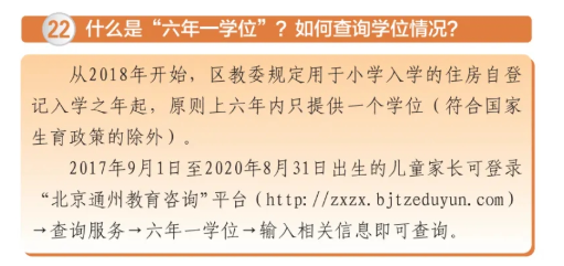 温馨提醒:通州区有六年一学位系统可查学位占用情况,详情可点击查看通州区六年一学位查询指南
