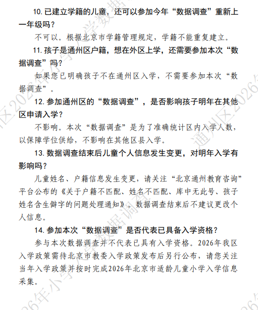 12 参加通州区的“数据调查”,是否影响孩子明年在其他区申请入学?