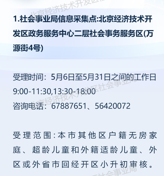 2026年北京经济技术开发区幼升小入学咨询方式涵盖荣华街道、博兴街道、亦庄镇、瀛海镇等区域,明确划分各片区受理范围,对应地址及咨询电话同步公开。家长可按居住地址精准对接,提前备齐材料,咨询电话可解答政策疑问,助力顺利完成小学入学。