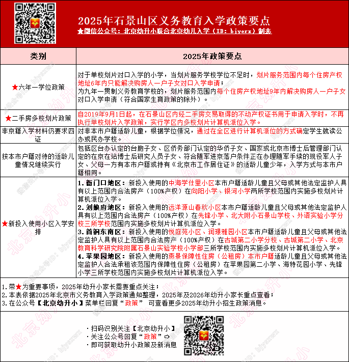 石景山区幼升小政策影响