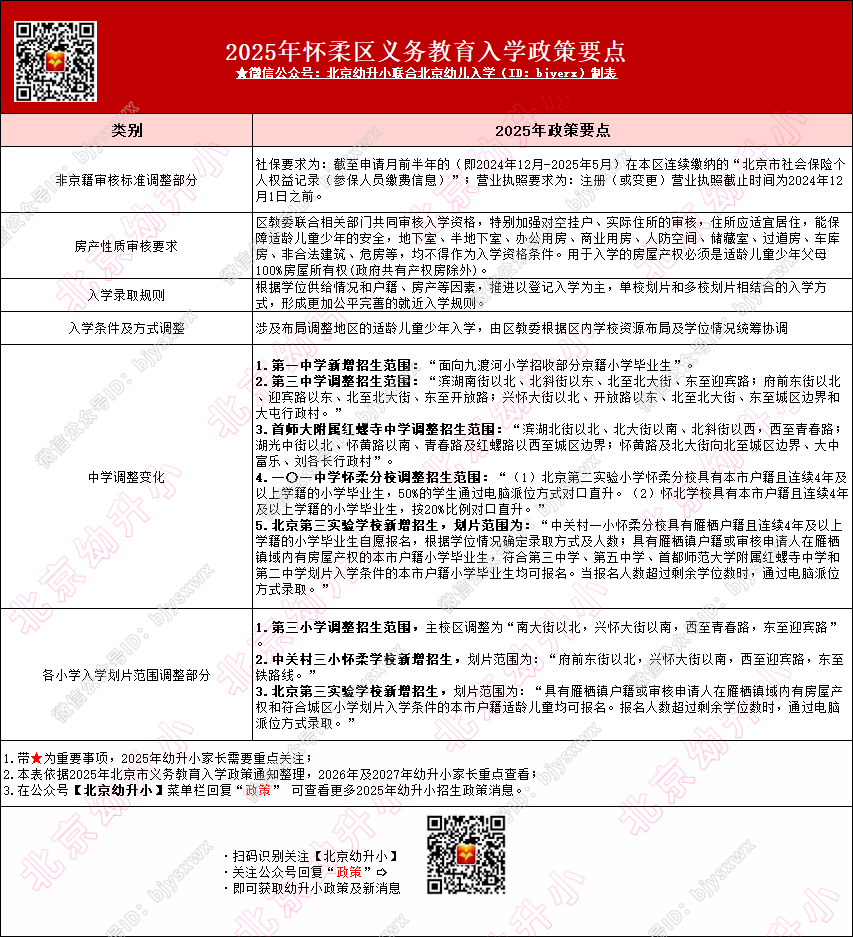 2026年怀柔区幼升小家长可先行参考上文了解政策,同时务必收藏四月底将发布的2026年怀柔区幼升小入学政策大汇总:义教政策、非京籍四证审核标准、信息采集、小学招生简章...