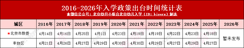 丰台区入学政策将在4月底正式发布,家长可先行参考2016年-2025年发布时间: