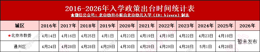 通州区入学政策将在4月底正式发布,家长可先行参考2016年-2025年发布时间: