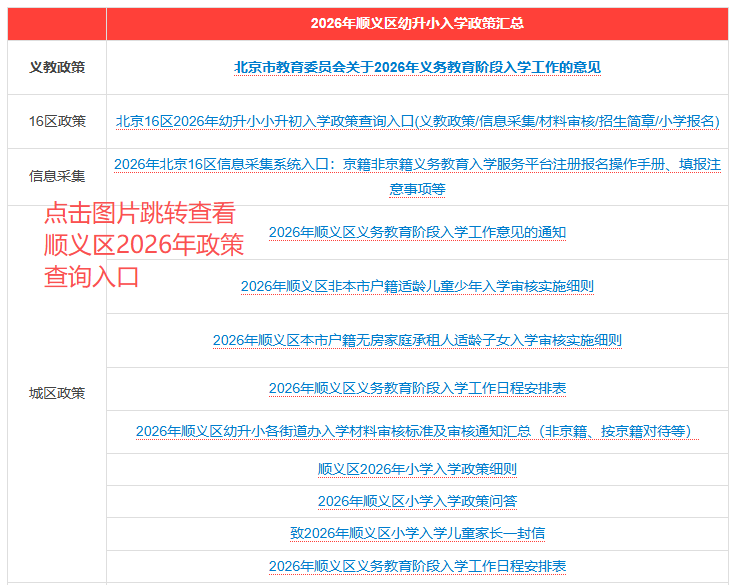 2026年顺义区家长可收藏:2026年顺义区幼升小入学政策大汇总:义教政策、非京籍四证审核标准、信息采集、小学招生简章...,待政策发布后可以及时获取最新政策;同时建议2027年顺义区幼升小家长也提前查看了解。