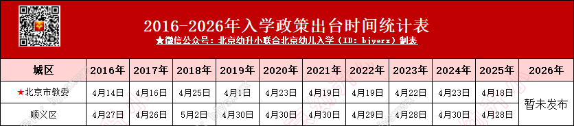 顺义区入学政策将在4月底正式发布,家长可先行参考2016年-2025年发布时间: