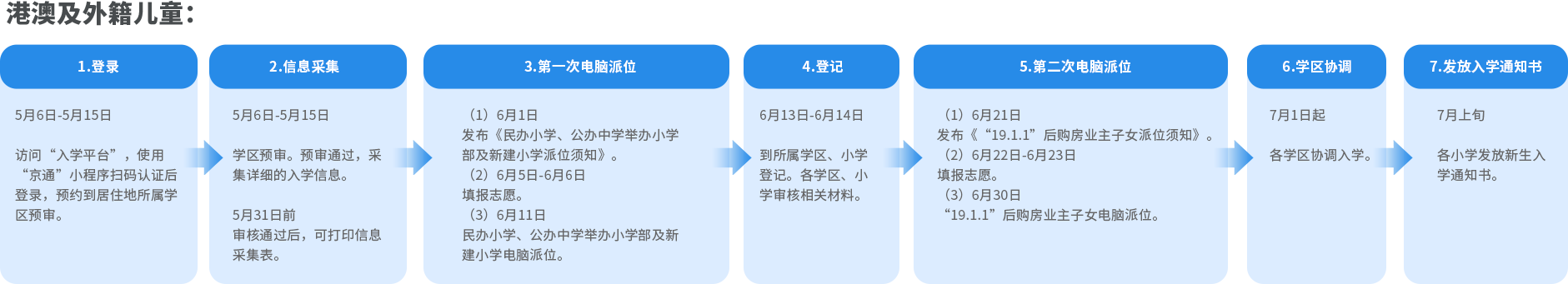 2026年海淀区港澳及外籍儿童入学流程图,详细说明了2026年海淀区港澳及外籍儿童入学详细流程,包括信息采集注册填报时间、第一次及第二次电脑派位、入学登记等时间要求,本文为您分享2026年海淀区按海淀区港澳及外籍儿童入学流程图,同时建议2027年海淀区港澳及外籍儿童幼升小家长提前关注准备。