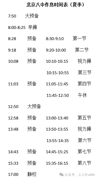 初中各年级每天早上7 点50到校,没有早自习。初一、初二每周二3点40放学,其它时间4点40放学,初三统一5点放学。初一、初二学校会组织很多活动,比如艺术节、科技节、体育嘉年华等,能丰富孩子们的课余生活。
