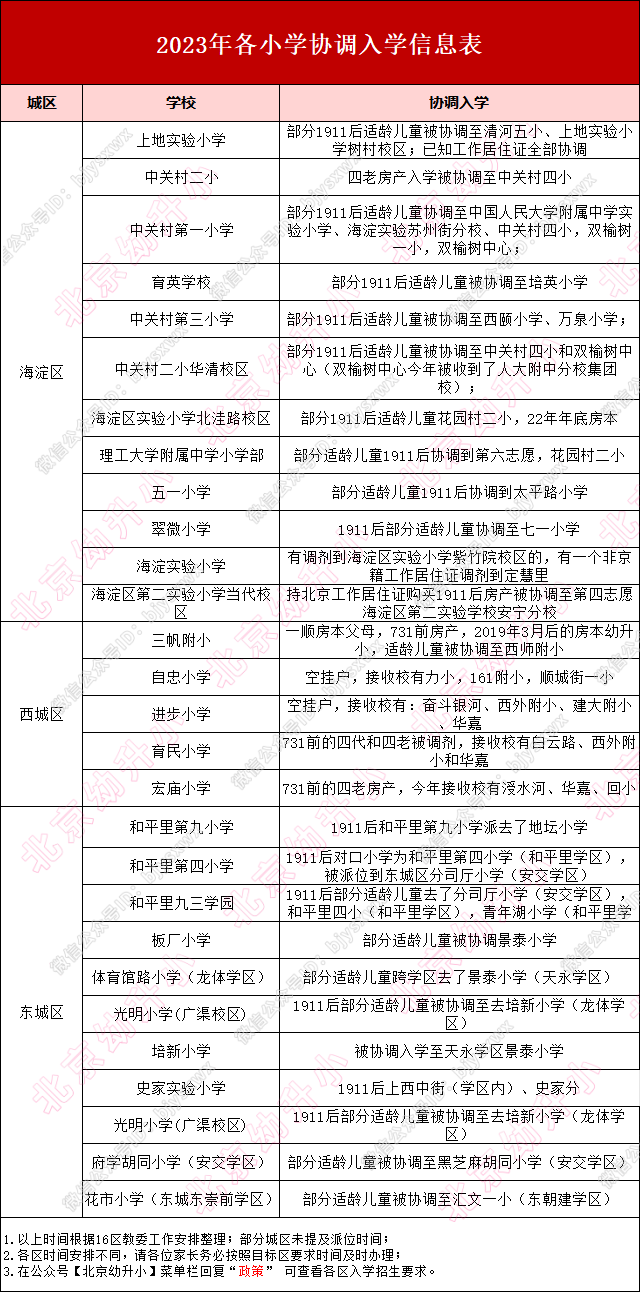 北京中小学协调入学一览
