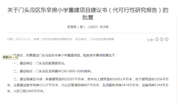项目位于昌平区天北街道清华大学附属小学昌平学校一期东侧,主要建设教学用房、办公及管理用房、生活服务用房、报告厅、设备用房、人防工程等,预计今年12月完工投用。