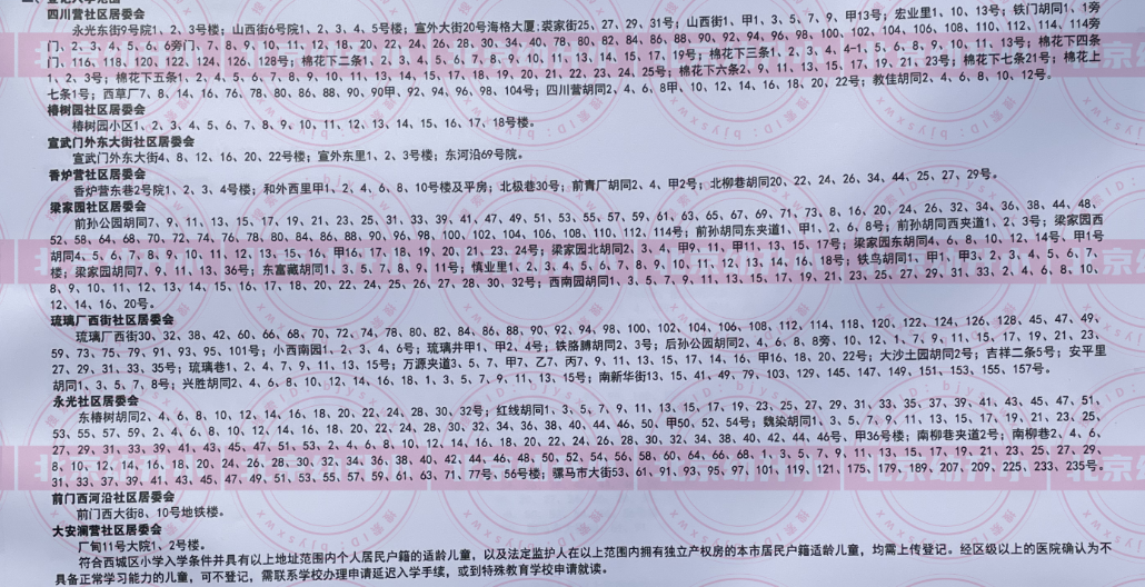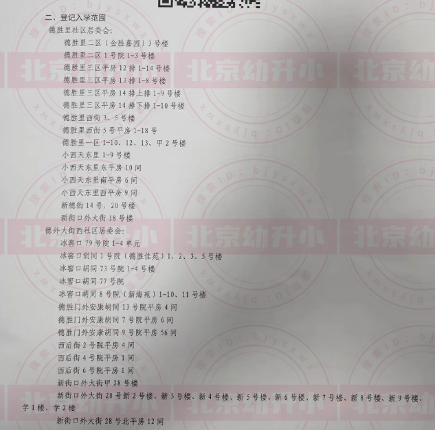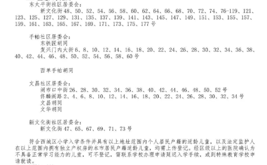 2.未说明的学校招生范围可参考2023年幼升小西城区小学招生简章查看。