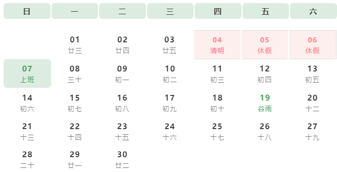 4月7日(周日)全体师生正常到校上班上学,补调周四的课。