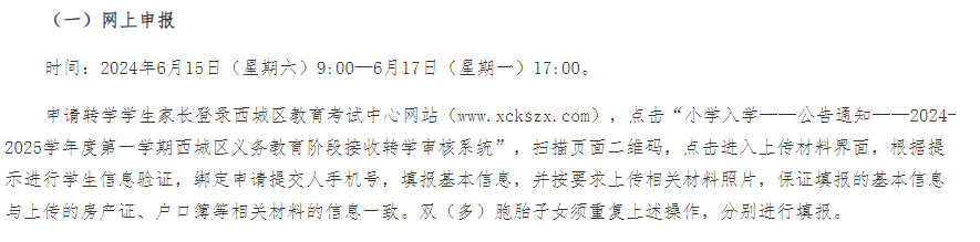 2024-2025学年度第一学期西城区义务教育阶段公办学校转学申请时间