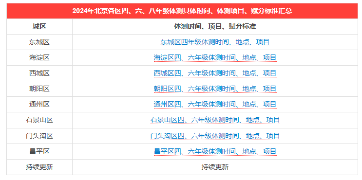 重磅消息,2024年北京各区四、六、八年级体测考试集中九十月进行!北京各区具体体测考试时间是什么时候?良好即满分,您知晓四、六、八年级体测赋分标准是什么?...北京幼升小网团队分享相关内容。