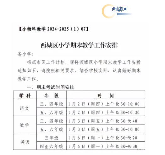 2025年寒假期末考试及寒假放假时间相对较早!多区集中在1月初进行期末考试,放假具体时间安排↓