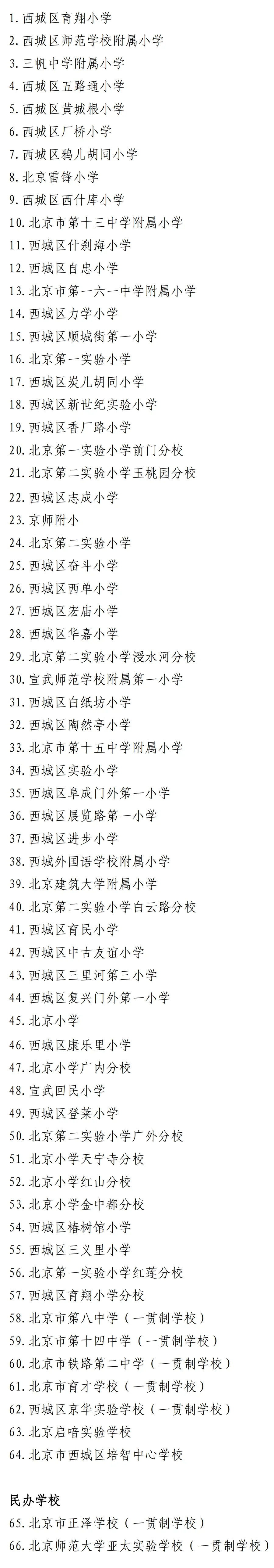 西城区2025年小学入学有招生资质学校名单