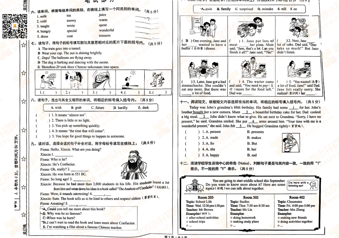 西城区2024-2025学年度第二学期期末小学六年级英语考试试卷下载入口