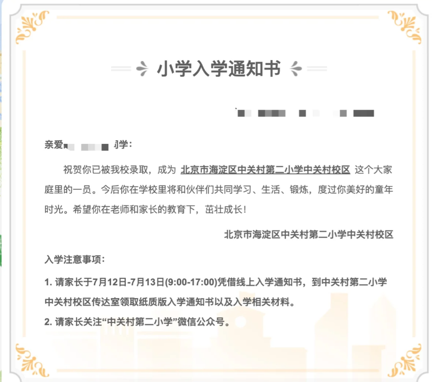 2025年海淀区小学录取通知公布,有家长分享海淀区中关村第二小学中关村校区2025年录取通知书,接下来做什么?何时到校领取纸质版录取通知书?北京幼升小网团队为您分享相关内容。