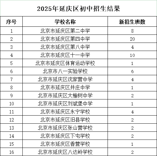 2025年延庆区初中招生结果