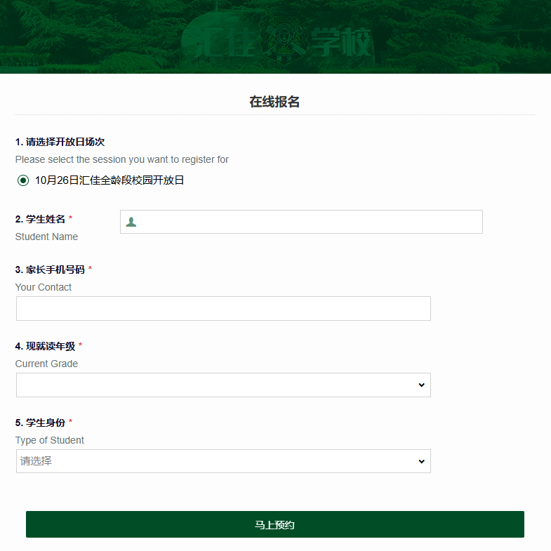 10月26日汇佳学校校园开放日预约入口:https://huijia.mike-x.com/BCHgDLZ