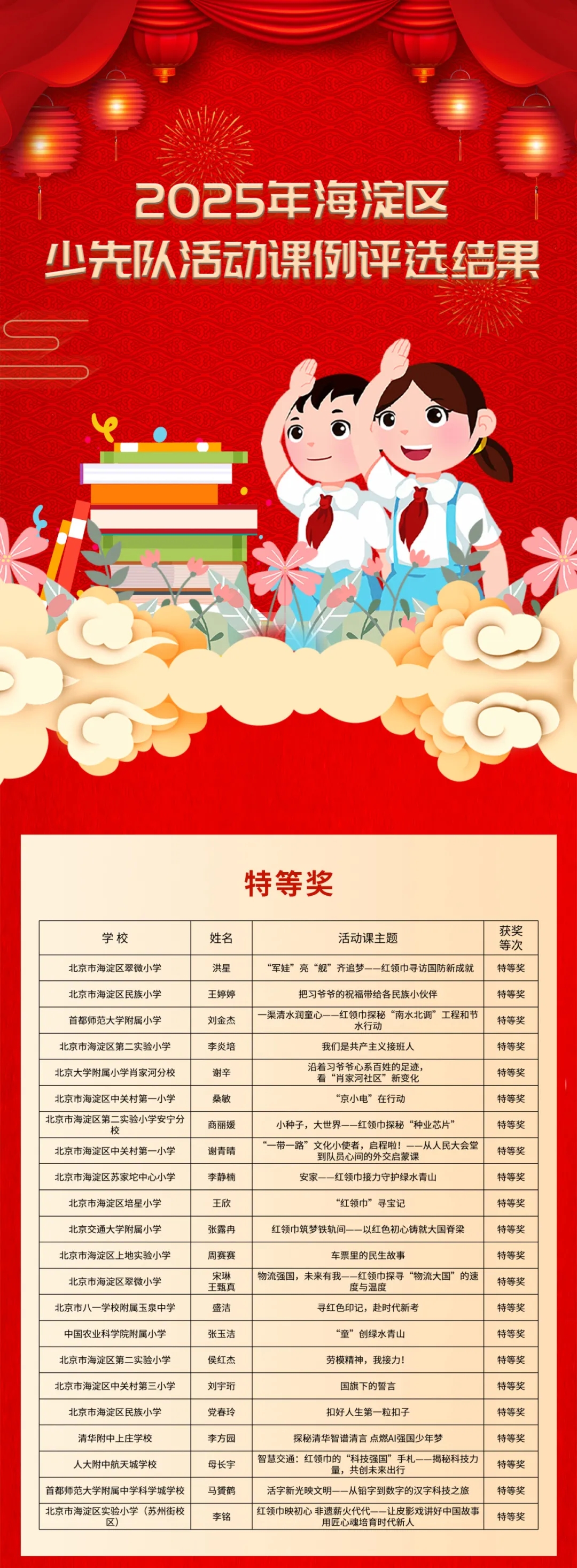 温馨提醒:本文同步海淀少先队发布名单,具体请以实际情况为准。