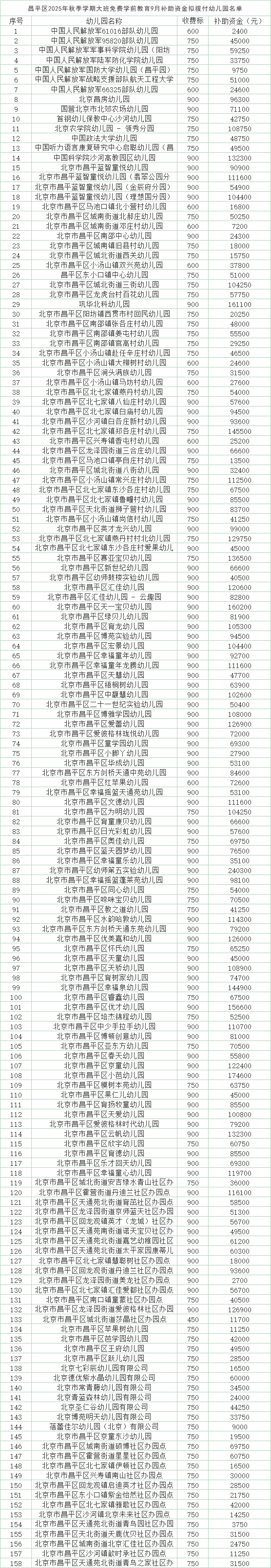 昌平区拟享受2025年秋季学期大班免费学前教育9月补助资金幼儿园名单公示