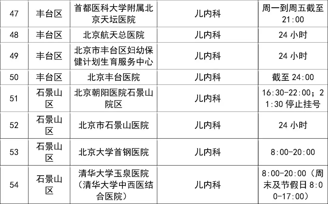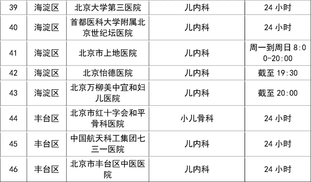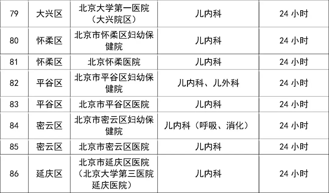 88家提供儿科夜间诊疗服务的医疗机构(含分院区)名单
