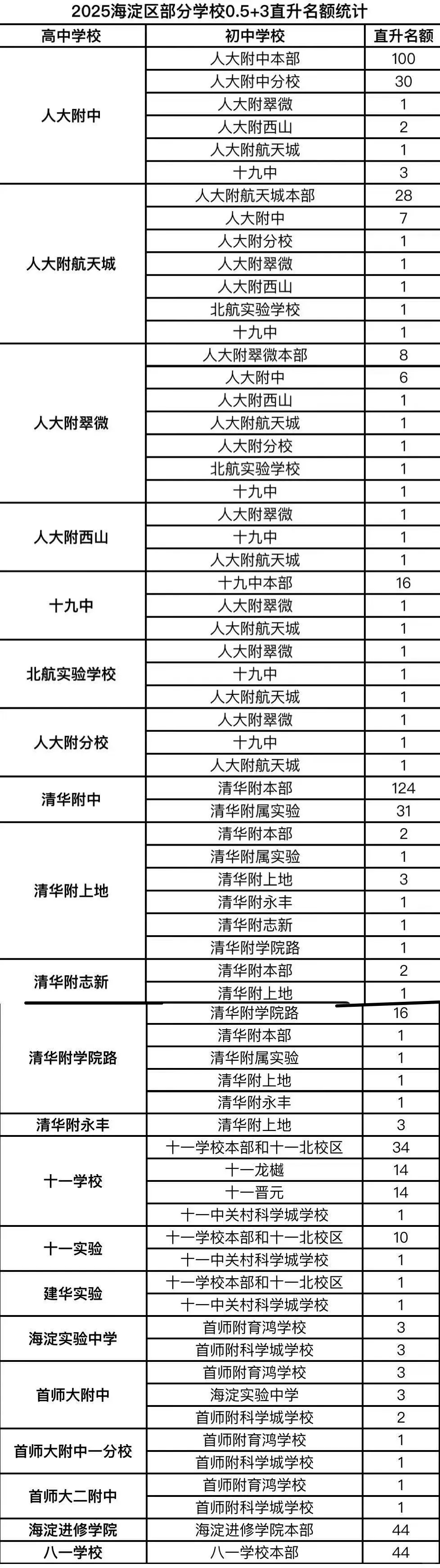 2025年海淀区0.5+3教育集团内直升学校一览表