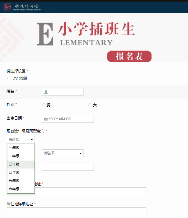 海淀区外国语实验学校京北校区小学插班生报名入口
