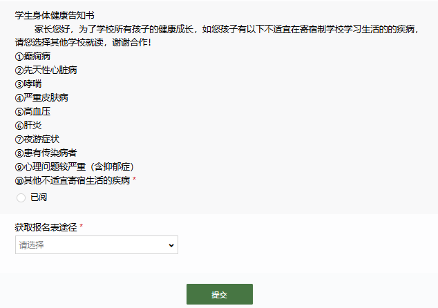 家长进入转学通知,选择【京北校区】,填写以下信息: