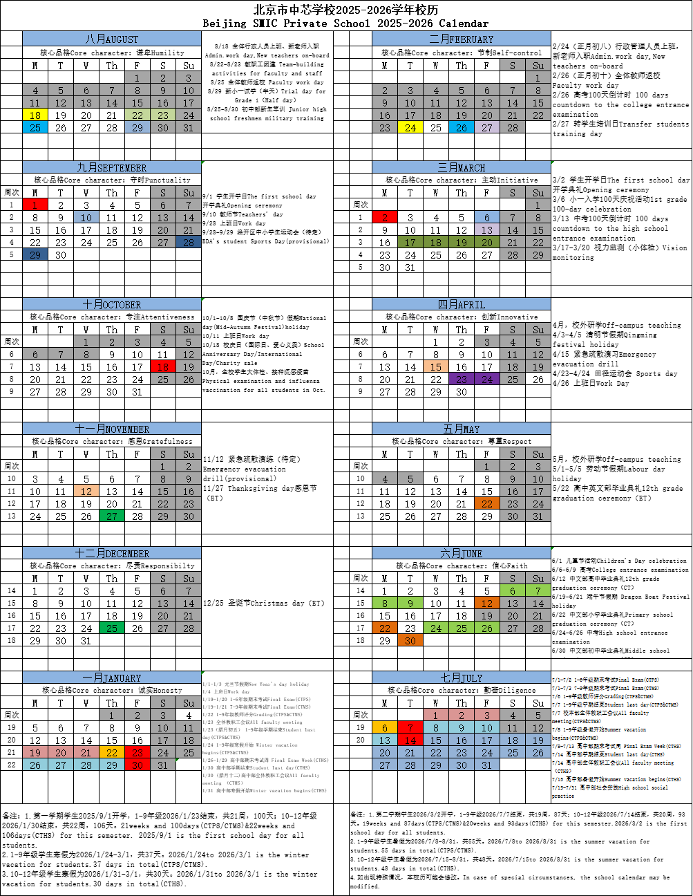 点击立即下载:北京市中芯学校2025-2026学年校历方便查看高清版