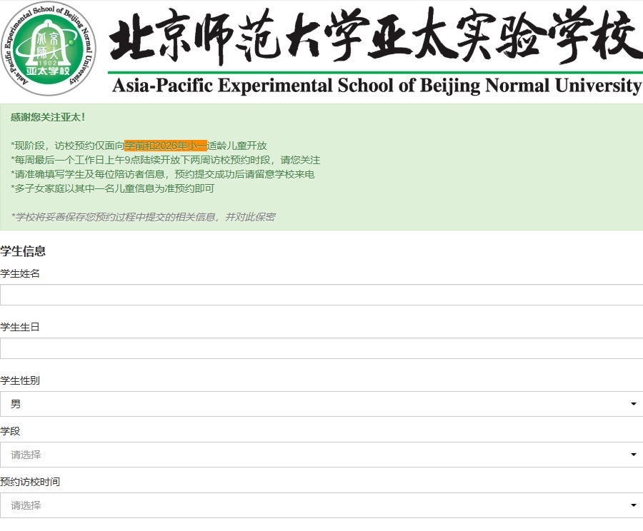 *现阶段,访校预约仅面向学前和2026年小一适龄儿童开放