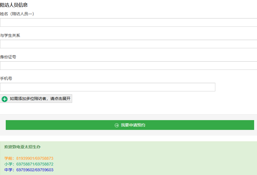 *请准确填写学生及每位陪访者信息,预约提交成功后请留意学校来电