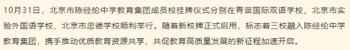 此外,其它区之前也有调整消息,如东城新增文汇中学教育集团,朝阳明诚外国语学校、拔萃双语学校、将府实验学校三所民办校加入北京中学教育集团...