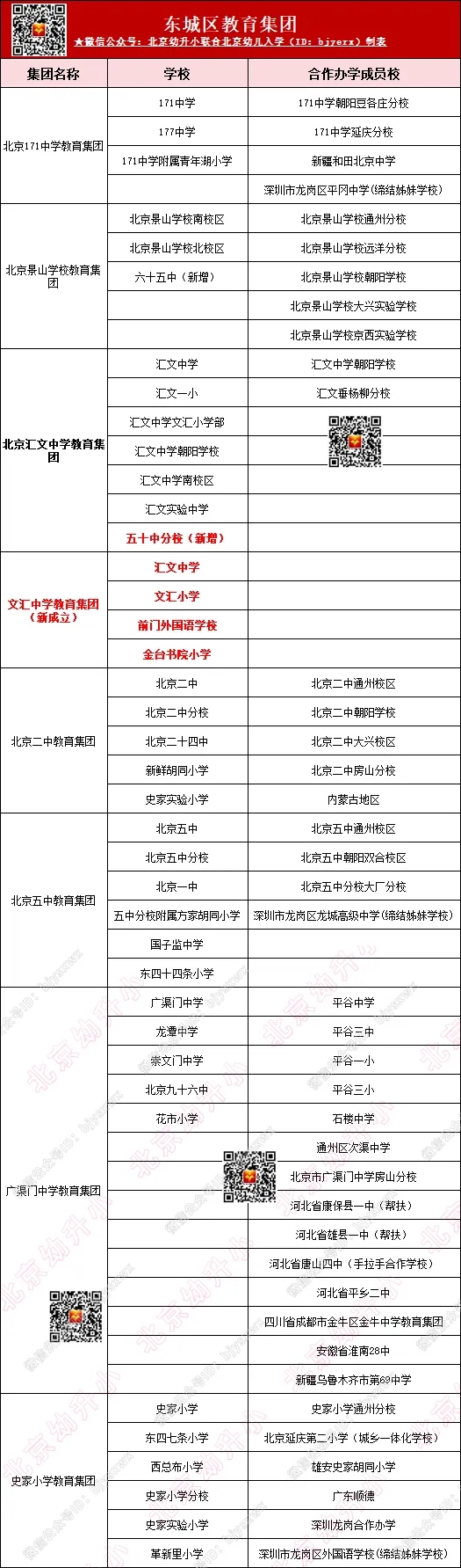 东城区新增文汇中学教育集团,值得一提的是,文汇中学未来有望与北京二中、汇文中学教育集团深度合作,这也意味着跨集团校直升或将成为现实: